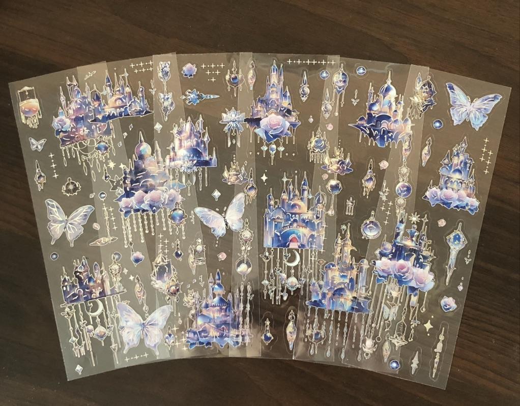 6 Sheets Long Strip Stickers Sky Castle Decorative Diary Album Scrapbooking Handmade DIY Junk Journal Supplies