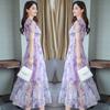 Korean Style V-neck Chiffon Floral Print Maxi Dress Beach Sundress for Women In Plus Sizes