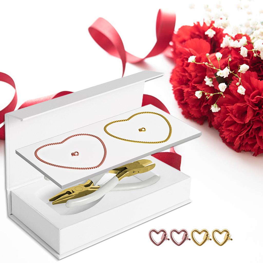 Complete DIY Enthusiasts Set: This comprehensive kit includes 2 bracelets, 4 heart buttons, and 2 pliers tools, offering all the essentials for your DIY projects, catering to creative individuals looking to personalize their accessories.