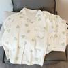 Fun Letter Bear Print Pajamas for Women Cartoon Sweet Cute Casual Women 2 Piece Set Homewear Simple Sleepwear Pajamas Set