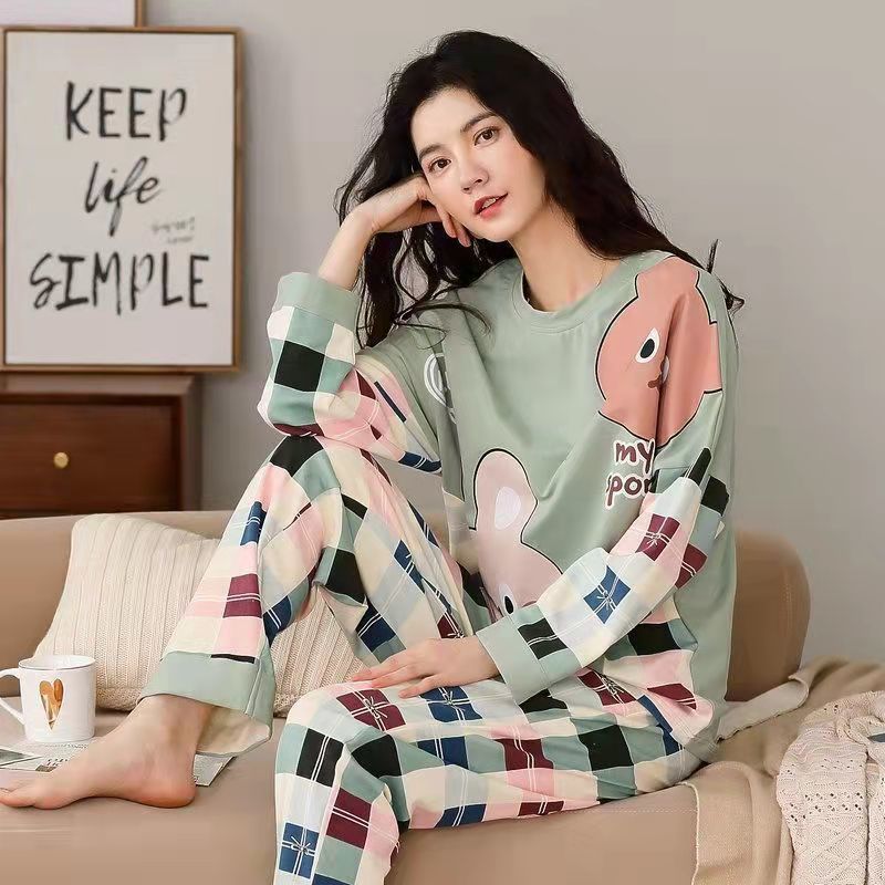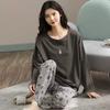 Plus Size Women's Korean Style Winter Pajamas Set, Long Sleeve Loose Fit Two-Piece Homewear, Casual Loungewear Suit for Indoor & Outdoor Wear — buy online with free worldwide shipping!