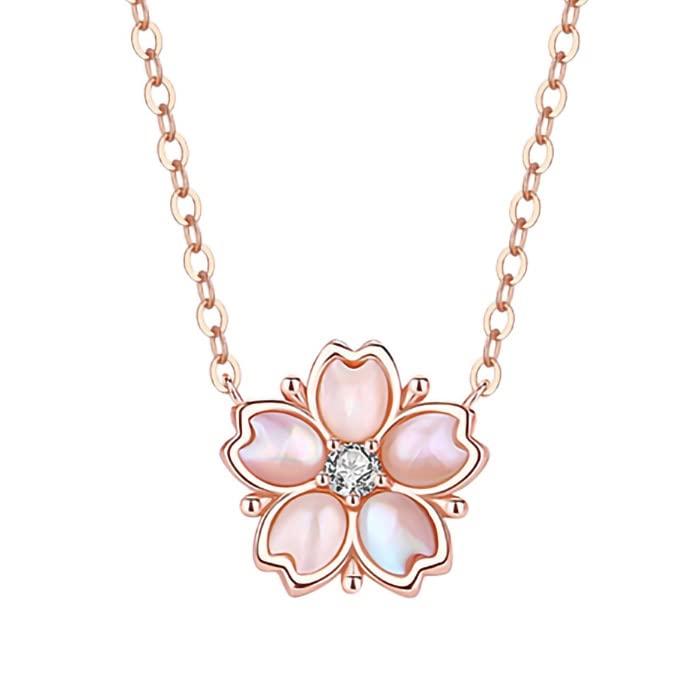 Sakura Necklace for Pink Gold 925 Hypoallergenic To Present for Her Single Zirconia [gulamu Jewelry] Women, Seashell, Finish, Silver, Metals, Women,