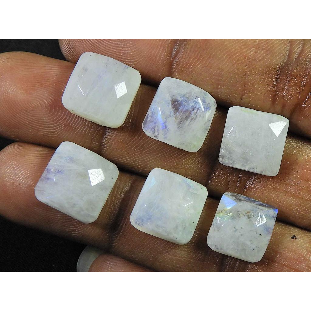 12X12 MM Natural Rainbow Moonstone Square Faceted Loose Gemstone 6 Pcs Lot RML-1009 — buy online with free worldwide shipping!