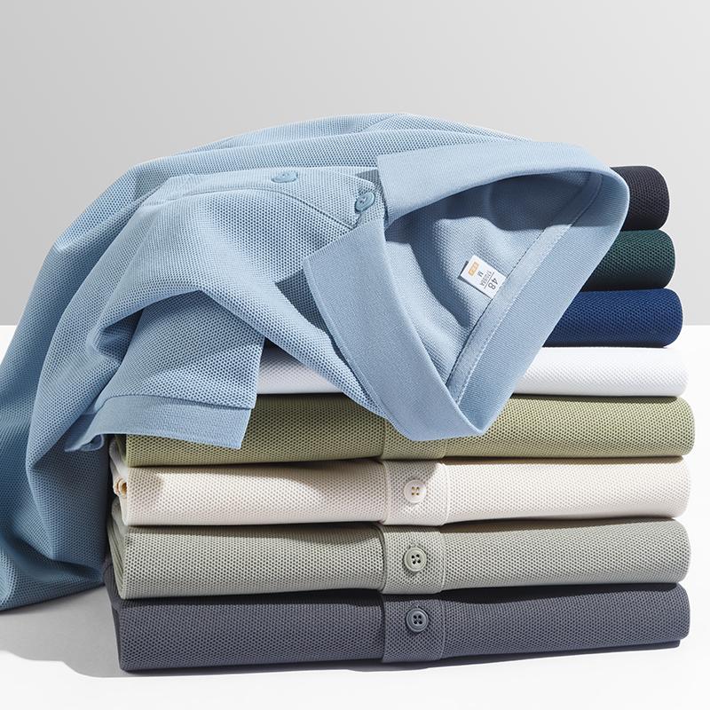2025 New Summer Men's Lapel Short-sleeved T-shirt Polo Shirt Solid Color Top