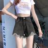 Classic and Minimalist Fashion Versatile Broken Holes Female Summer High-waisted Thin Raw Edge A-line Wide-leg Denim Shorts Individuality Trendiness
