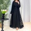 Ramadan Eid Prayer Lace Abaya Two Piece Set Inner Dress Women Flare Sleeve Long Abayas Kaftan Djellaba Dubai Party Vestidos