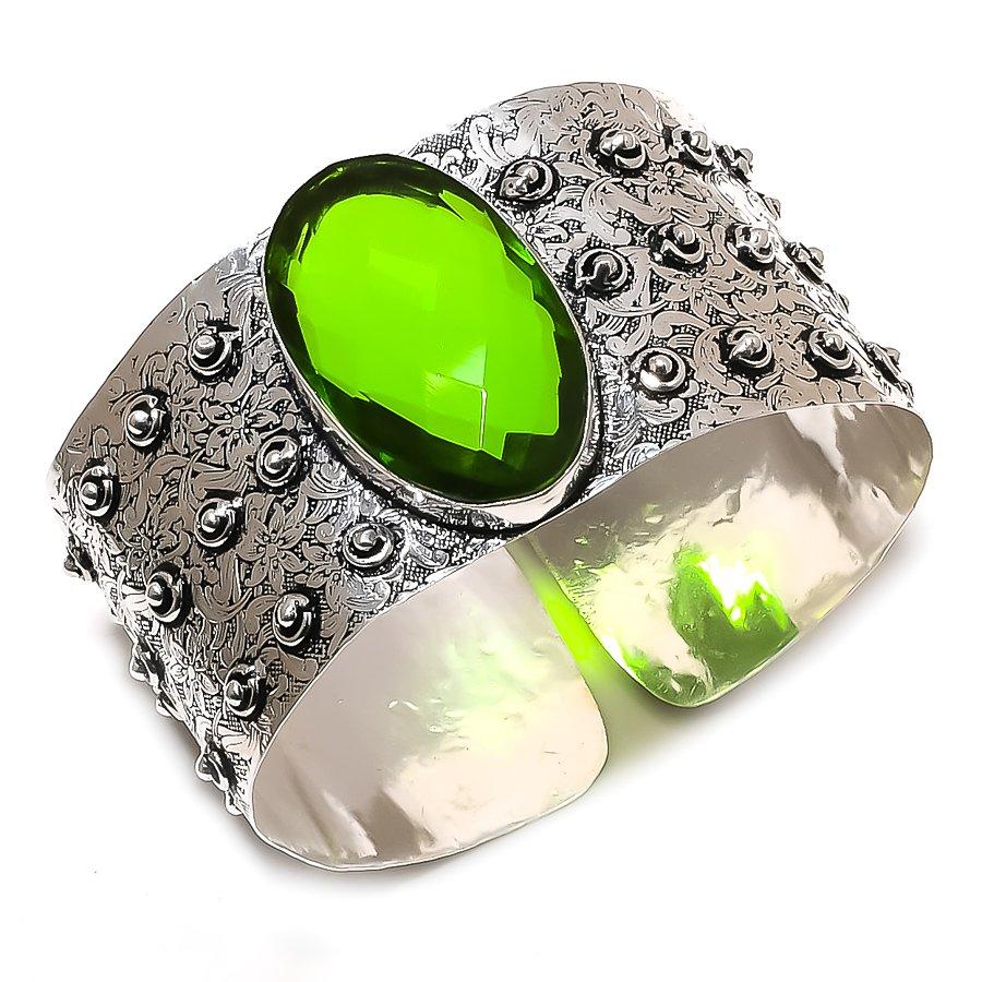 Natural Peridot Gemstone 925 Sterling Silver Cuff Bangle Adjustable N7g56 — buy online with free worldwide shipping!