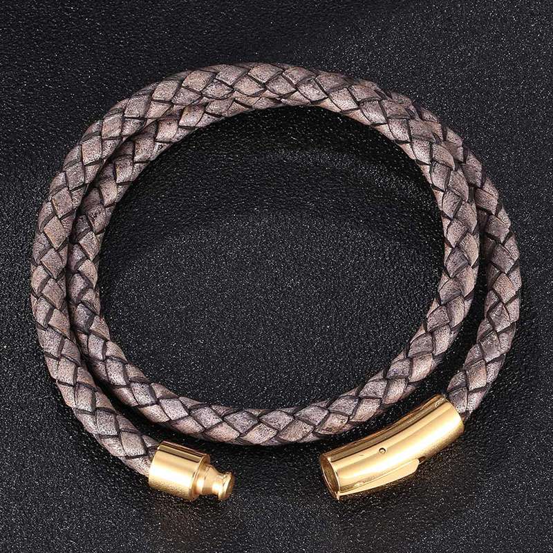Steel Snaps Bracelet Retro Multilayer Genuine Leather Bangles Braided Wrap Trendy Bracelet Friendship Gift