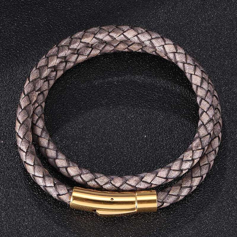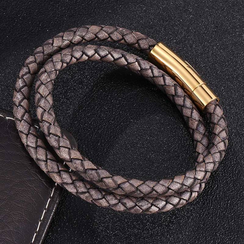 Steel Snaps Bracelet Retro Multilayer Genuine Leather Bangles Braided Wrap Trendy Bracelet Friendship Gift — buy online with free worldwide shipping!