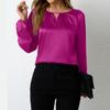Women's Long Sleeve Shirt Loose Satin Top Embossed Lace R-neck Silk Lined Top