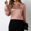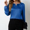 Women's Long Sleeve Shirt Loose Satin Top Embossed Lace R-neck Silk Lined Top — buy online with free worldwide shipping!