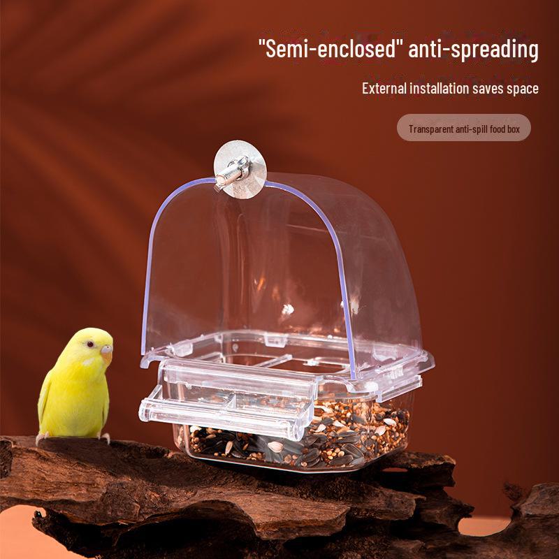 Transparent Anti-Spill Budgie Parrot Feeder - Automatic Bird Feeding Box