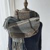 Korean Style Plaid Cashmere-Like Tassel Scarf for Women - Warm, Thick, and Ideal for Autumn and Winter