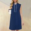 Women's Casual Fashion Round Neck Sleeveless Solid Color Hooded Drawstring Dress