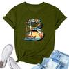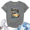 Women's Fashion Printed Casual Pleated Round Short Sleeve T-Shirt Top