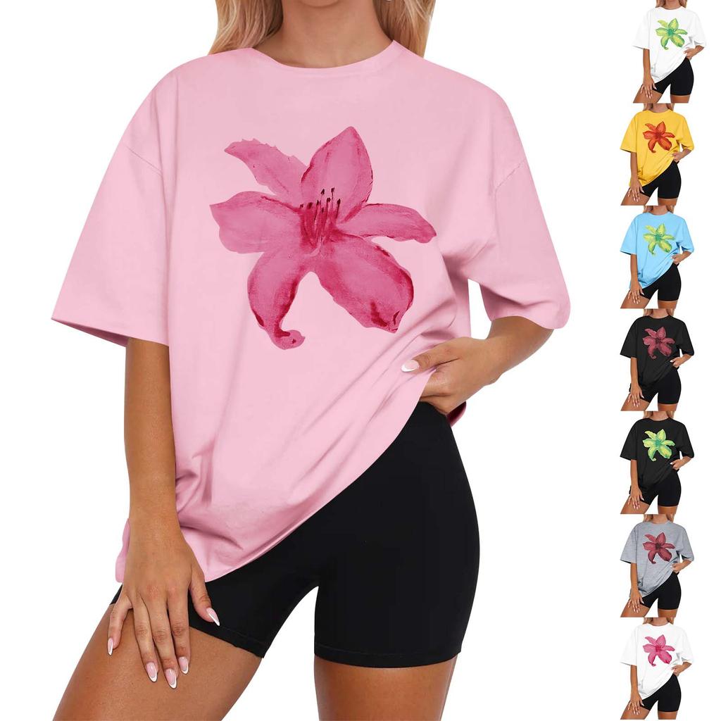 Women's Casual Printed T-Shirt Round Neck Pullover Short Sleeve Top