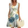 Women's Summer Casual Square Neck Floral Print Sleeveless Dress With Pockets
