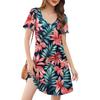 Women's Fashion Casual Printed With Pockets Bohemian Beach V-Neck Short Sleeve Dresses