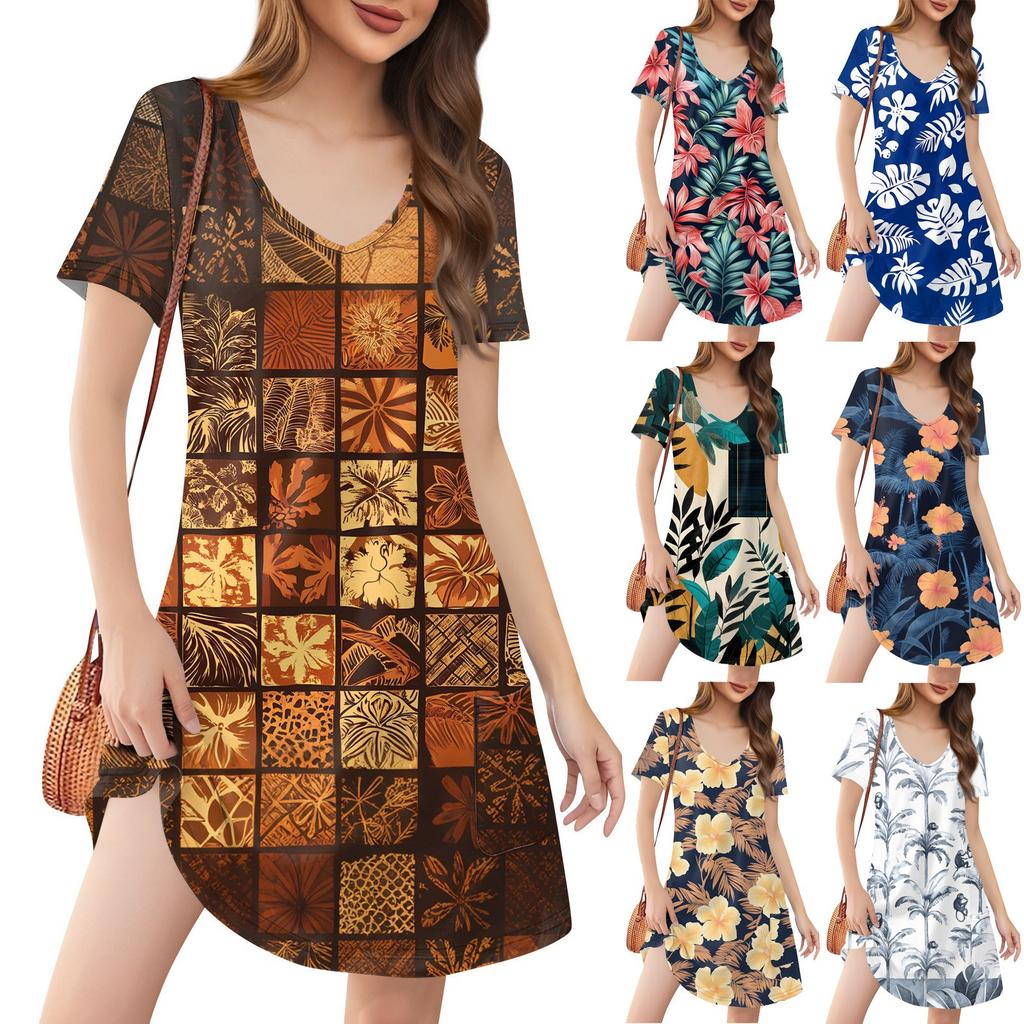 Women's Fashion Casual Printed With Pockets Bohemian Beach V-Neck Short Sleeve Dresses — buy online with free worldwide shipping!