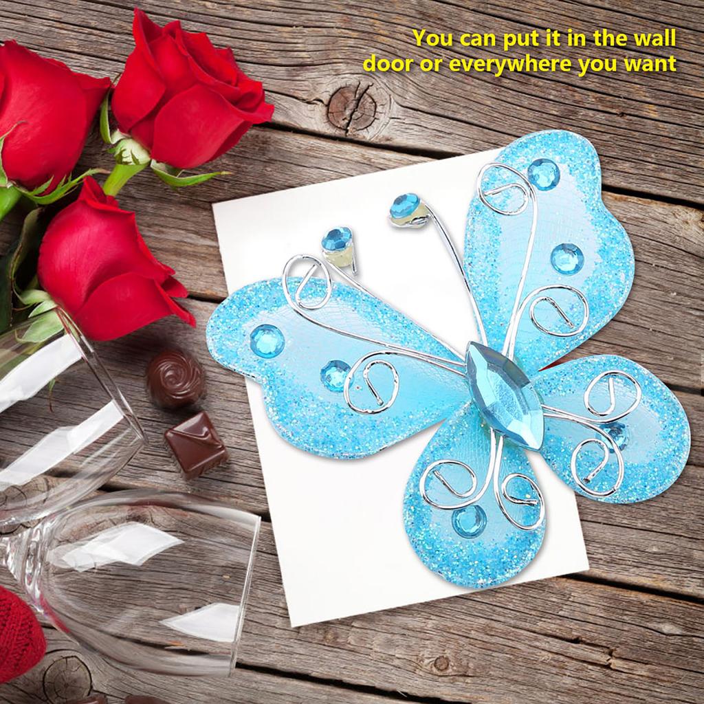 24pcs Sheer Mesh Wire Glitter Butterfly Wedding Party Clothing Decoration DIY Supplies Blue