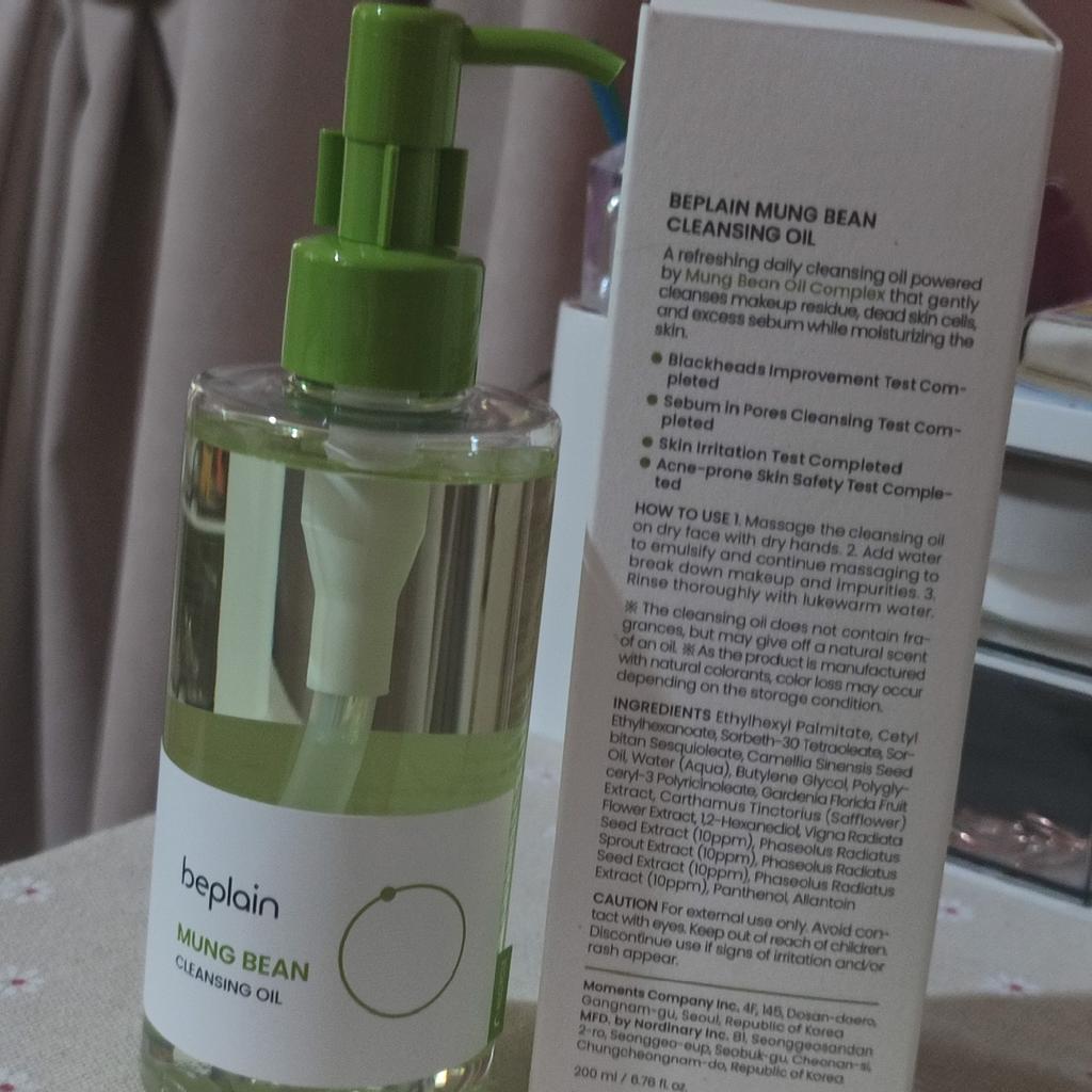 GENTLE MAKEUP REMOVER : A watery, refreshing cleansing oil infused with greenful mung bean that immediately melts away long-wear makeup such as mascara, sunscreen, lipstick, eyeliner. This cleansing oil removes impurities lodged in pores effectively without sticky residue.