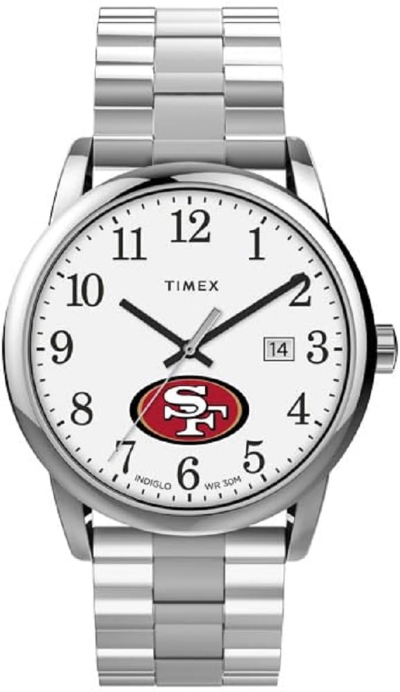 Timex Men's EasyReader 38mm Watch - San Francisco 49ers with Extended Band Stainless Steel Modern, Stainless Steel, Modern