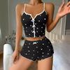 Sleepwear Women Pajamas Set Heart Print Soft Ribbed Fabric with Flirty Frill Trim Casual Cami Top and Shorts Sets Loungewear — buy online with free worldwide shipping!