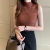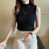 Summer Tops Women Semi High Neck Soft Knitted Sleeveless Casual Shirts for Women Fashion Slim Fit Base Blouses Women Elegant Simple Lady Shirt 26302