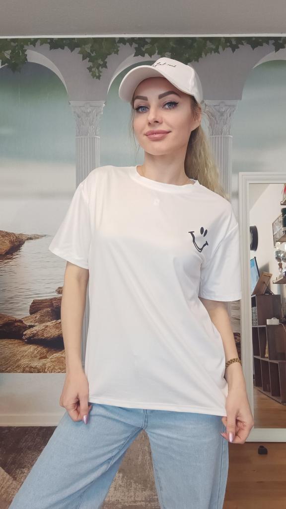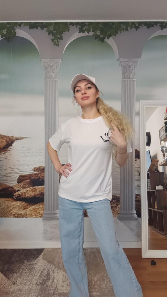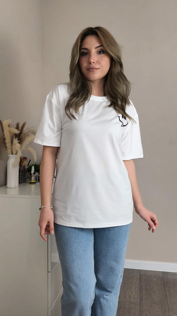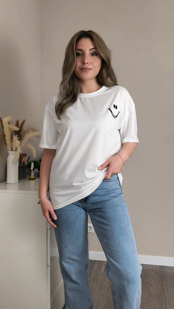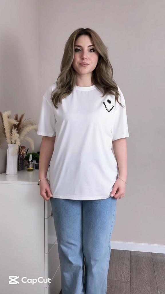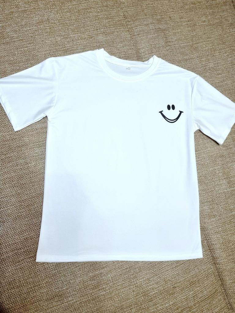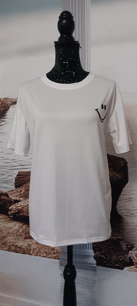 Casual shirt with slimes (smile). 🔆🧥👍 🔆Delivery time 🔆: 15 days to Germany. 🔆Scope of delivery 🔆: Included in the delivery is a shirt in the corresponding color and size. The product is available in two different colors. It is available in sizes M to 2XL.. I ordered it in size M in white, and the top fits me well. It has a loose fit, which I really like. I could have ordered a size smaller. The shirt is soft and comfortable against the skin, and opaque. Very, very soft. I normally wear a size S (36). I weigh 55 kg and am 167 cm tall. My measurements are 90-65-90 cm, and I'm 167 cm tall.. QUALITY 🔆: The top is of excellent quality, very well made, and without any unpleasant chemical smell. 👍👍I'm thrilled!👍👍👍👍 The shirt is perfect for all seasons. Unfortunately, I can't say anything about the material composition because I couldn't find a label. The manufacturer's website says it's polyester. It's possible it's a blend of polyester and cotton, because the fabric is very soft and comfortable. ⬆️⬆️⬆️Summary: Beautiful top that has excellent quality 🧥👍👍👍🔝 Thank you Joom and the seller! 5 Stars! 🌟 I am happy to recommend the product!👍🔝🔝🔝🔝✅️👌