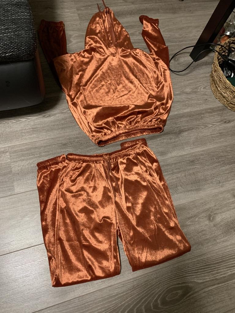 Women's Solid Color Gold Velvet Hooded Long-Sleeve Sports Casual Suit - Autumn/Winter 2021 — buy online with free worldwide shipping!