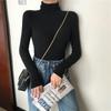 Women's Solid Color High Collar Slim Fit T-Shirt: Trendy Long-Sleeve Korean Style for Autumn/Winter 2025