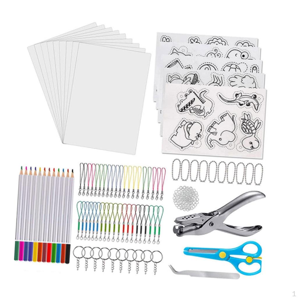 - 【Comprehensive kit】: This heat shrink film papers kit includes heat shrinkable sheets; colored pencils; hole puncher; Scissors; keyrings; Jump Rings; lobster clasps, and everything you need for your DIY projects