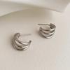 Dongdaemun Shiny Metal Design 925 Silver C-Shaped Personality Earrings – Cold Style, Fashionable, All-Match