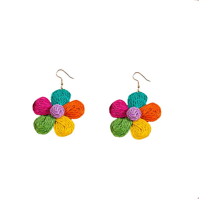 Raffia Flower Statement Earrings, Colorful and Trendy, Hand-Woven Niche Design. — buy online with free worldwide shipping!
