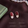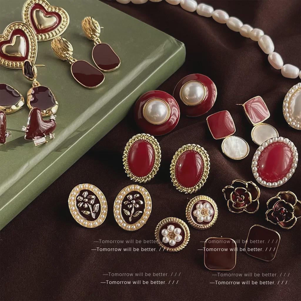 French Red Oil Drop Earrings - Retro, High-End, Light Luxury, Medieval Style for Women