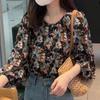 Spring New Korean Style Round Neck Puff Sleeve Printed Shirt for Women Loose and Versatile Long-sleeved Shirt