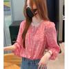 Spring New Korean Style Round Neck Puff Sleeve Printed Shirt for Women Loose and Versatile Long-sleeved Shirt — buy online with free worldwide shipping!