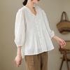 Spring Autumn Cotton Organ Shirt Women's V-neck Lantern Sleeve Lace Splicing Top Loose Solid Color Shirt Blouses & Shirts