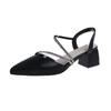 Sandals Women's Middle Heel Fairy Style Pointed New RhinestoneThick High Heels Black Luxury Designer Summer Footwear 2025