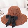WTEMPO Summer Black Bow Wide Brim Outdoor Travel Knitted Hats Women's Foldable Solid Color Casual Versatile Hats — buy online with free worldwide shipping!