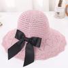 WTEMPO Summer Black Bow Wide Brim Outdoor Travel Knitted Hats Women's Foldable Solid Color Casual Versatile Hats