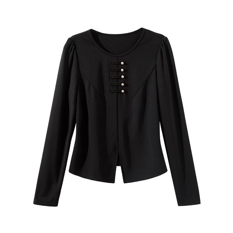 New Chinese Style Long-sleeved T-shirt for Spring New Women's Small Slit Loose Lazy Top