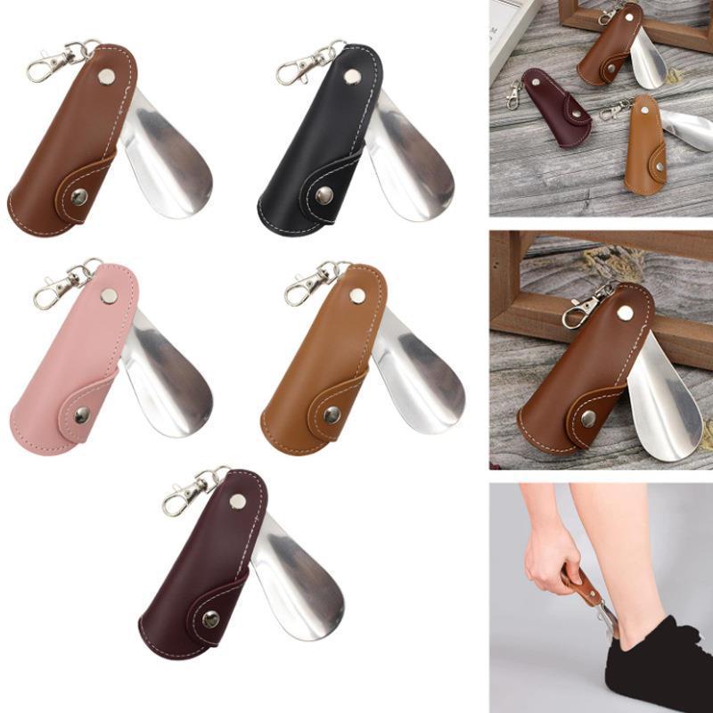 Metal & Leather Shoe Horn with Case - Unisex Mini Portable Shoe Puller with Hanging Buckle — buy online with free worldwide shipping!