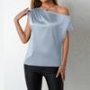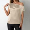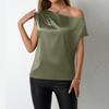 Women's Short Sleeve Shirt Loose Satin Top Embossed Lace V-neck Silk Lined Top — buy products online with free worldwide shipping!
