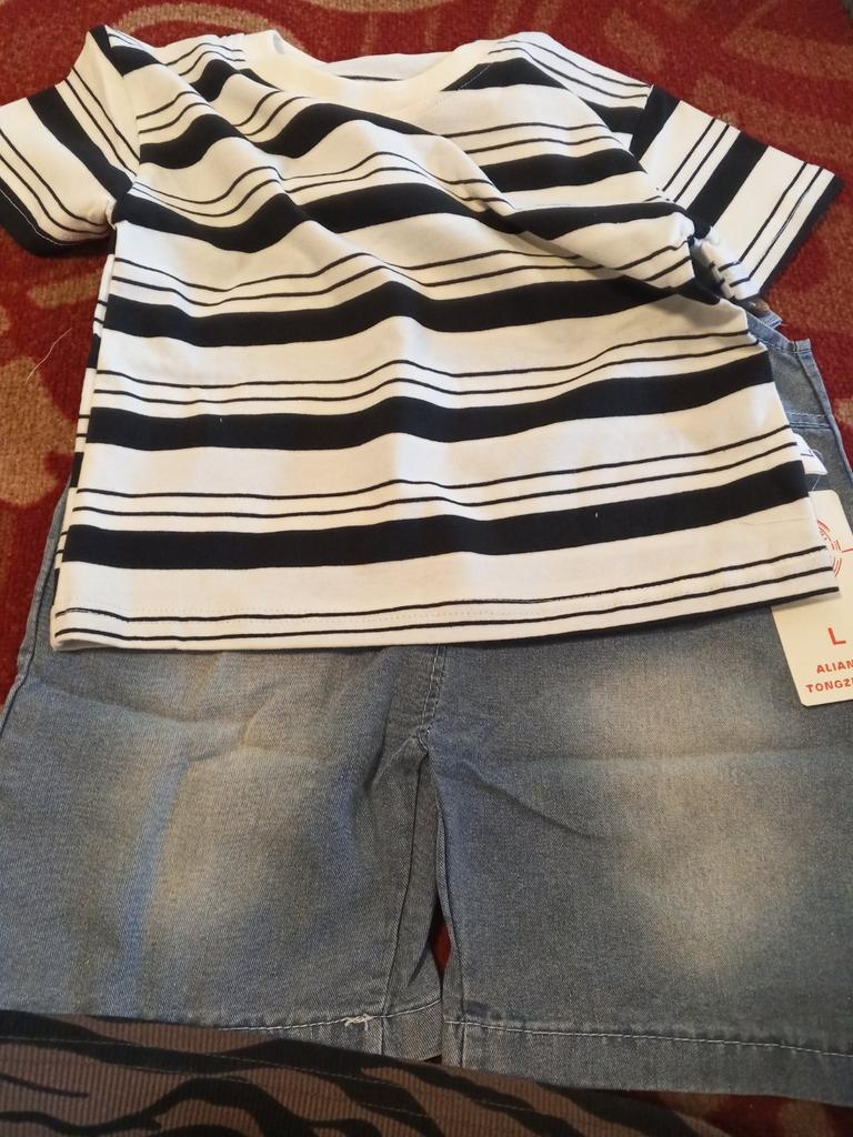 Boys' suit Children's Striped short Sleeved T-shirt Denim overalls Two-piece Set Baby Cartoon Clothes — buy online with free worldwide shipping!