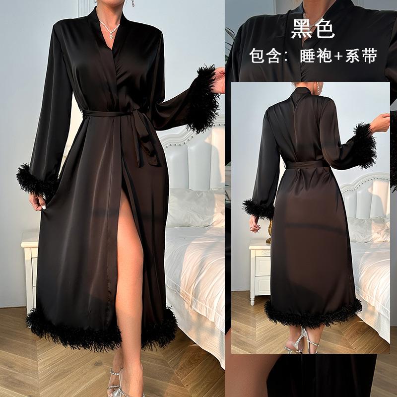 New Solid Color Sexy Feather Long-sleeved Comfortable Nightgown Breathable Casual Can Be Worn Outside