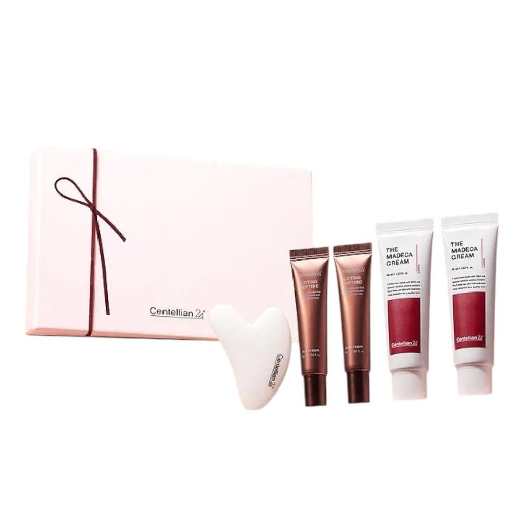 The Centellian24 Madeca Cream Duo Gua Sha Set is an advanced skincare solution combining powerful skin barrier repair with a lifting effect. This special set features two full-sized Madeca Creams (45ml each), two Lifting Eye Creams (15ml each), and a Gua Sha facial massager, designed to promote radiant, youthful skin.