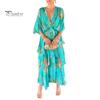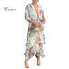 This elegant Women's Dress features a loose fit that flatters various body types. Crafted from polyester, it boasts fashionable prints, a deep V-neck, waist lace-up, and a multi-layer hem design for a charming and sophisticated look. The dress offers a casual loose cut with a soft and lightweight fabric ensuring comfort all day long.