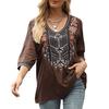 This Loose Shirt features a 3/4 sleeve design and a pullover style that adds a touch of Bohemian flair to your outfit. The exquisite embroidery adorns the neckline, cuffs, chest, and shoulders, creating a unique look that sets you apart from the crowd.