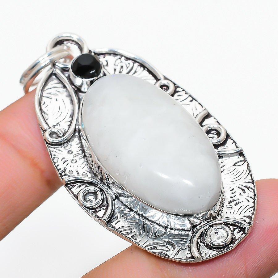 Rainbow Moonstone, Spinel 925 Sterling Silver Jewelry Pendant 2.36" G8T77